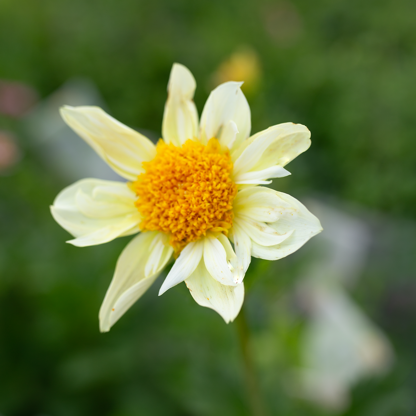 Open-centered dahlias should be harvested when they're about three-quarters open, before the center becomes fluffy and dusted with pollen.